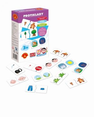 Pomocí dvoudílných velkých kartiček s obrázky se děti učí chápat protiklady (např. malý – velký, den – noc, vysoký hluboký atd) Tvar spojení jim napoví, jestli opravdu našli správnou dvojici.