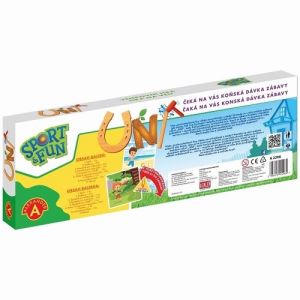 Hod podkovou "UNI" je klasická hra, která prověří vaší zručnost a soustředění. Hraje se v týmech nebo jednotlivě a hráči musí prokázat přesnou mušku, pevnou ruku, dobrý odhad vzdálenosti a... nervy z oceli. Navíc k dílům vyrobených ze dřeva: kůl, kladivo a 4 podkovy, jste získali také dvě různě dlouhá lanka a 8 kolíků pro jejich upevnění. Lanka vymezují dvě další oblasti, kde dopadlá podkova získává body. Čím blíže podkova dopadne ke kolíku, tím více bodů získáte.