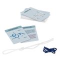 Odvázat se zvládne s trochou odvahy každý. Ale uvázat? To už chce pořádnou dávku šikovnosti. Naučte se hravou formou vázat nepřeberné množství uzlů a změřte své síly a zručnost na párty s kamarády nebo třeba s dětmi na cestách. V krabičce najdete jak barevné provázky, tak návody na uzly nejrůznějších obtížností. Balení obsahuje: 50 kartiček s návody na vázání uzlů, modrý a bílý provázek.