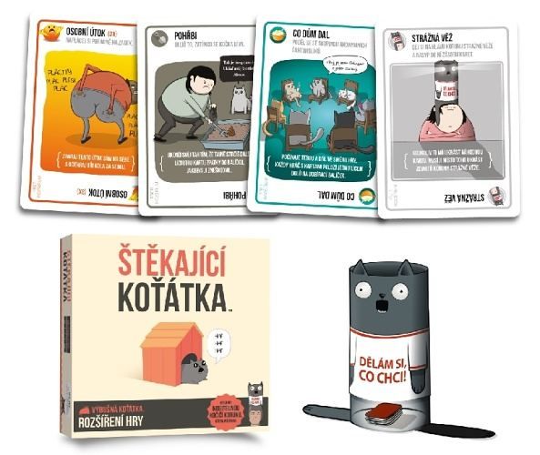 Třetí rozšíření oblíbené karetní hry Výbušná koťátka. HAF-HAF-HAF! Na štěkotu psa není nic podivného, ale když štěká kočka? Stačí si představit tento bizárek a hned vám musí být jasné, že 3. rozšíření vnese do vaší oblíbené kočičí hry opět nové mocné akce a efekty, které mění hru! Na co se jistě všichni těšíte nejvíc, je nositelná kočičí koruna alias Strážná věž! Rozhodně se nejedná o nějakou hanbu, ba naopak! Kdo korunu nosí, ten se vyhne krádežím od ostatních hráčů... alespoň do té doby, než mu dojdou extra karty v zásobníku. A kdo by radši škodil, než dělal ze sebe kočičího krále, tomu se nepochybně zalíbí Štěkající koťátko... Haf-Haf-Haf! Na to, co dělá, se ho radši zeptejte sami! Upozornění! K tomuto rozšíření budete potřebovat alespoň jednu základní sadu Výbušných koťátek - Originální edici, Přisprostlou edici, Párty karty atd.
