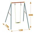 „Nastavitelná výška plastového sedátka, vyrobené vstřikovací metodou Houpačka zavěšena na pevném závěsném oku. Rozměry: UOLË :190×185×132cm“
