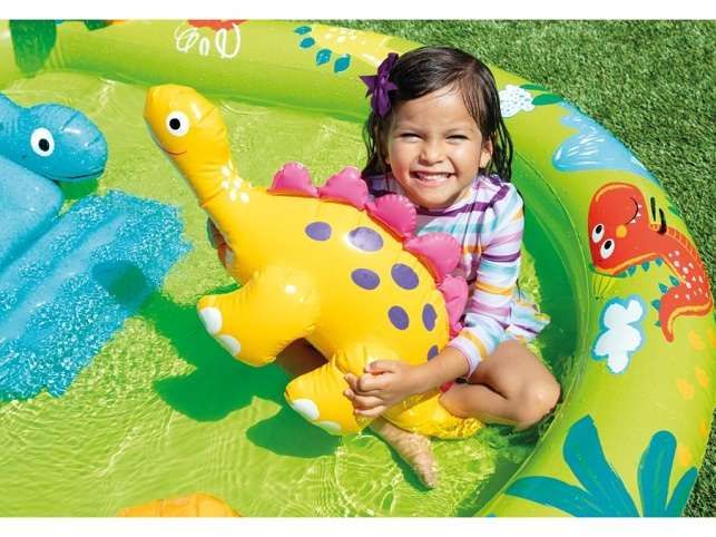 INTEX 57166 Hrací centrum s dinosaury 1,91m x 1,52m x 58 cm nafukovací hrací centrum od výrobce Intex zajistí skvělou zábavu pro vaše děti. Součástí centra plného her je bazének, sprchovací palma s připojením na zahradní hadici, skluzavka s měkkým dopadem a samostatně stojící dinosaur. Děti budou nadšené. Rozměry: 191 x 152 x 58 cmSamostatná sprcha s připojením na zahradní hadiciMaximální zatížení: 54 kgMateriál: vysoce odolný vinyl 0,30 mmVypouštěcí ventil bazénuOpravná sada v baleníVhodné pro děti od 2 let