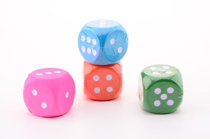 Hrací kostky pěnové střední, ve čtyřech barvách – růžová,