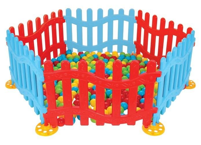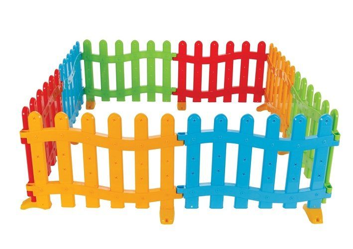 Plastová ohrádka vysoká 49cm. Určena pro děti od 1.Skládá se z 8 jednotlivých plůtků.Jednoduché sestavení i přestavění do různých tvarů bez použití nářadí a šroubů. Slouží jako ohrádka, možno naplnit plastovými míčky a máme bazének nebo jednoduše jako plůtek do pokoje či na zahradu. Při sestavení do osmiúhelníku docílíme šíře 195 × 195 cm.Jednotlivý díl má rozměry 47 × 72 cm a je 3 cm tlustý.