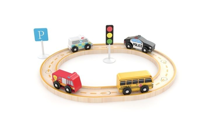 J`adore je řada vzdělávacích hraček pro nejmenší, vyrobených z ekologicky udržitelného dřeva, bez chemikálií. Produkt stimuluje dětskou fantazii. Set je vhodný pro děti od 18 měsíců. Set obsahuje koleje a vozidla z městského provozu.