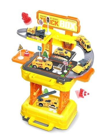 Hrací set je lehce složitelný a přenosný v kufříku. Součástí balení jsou 4 autíčka. Výrobek rozvíjí motorické dovednosti dítěte, představivost.