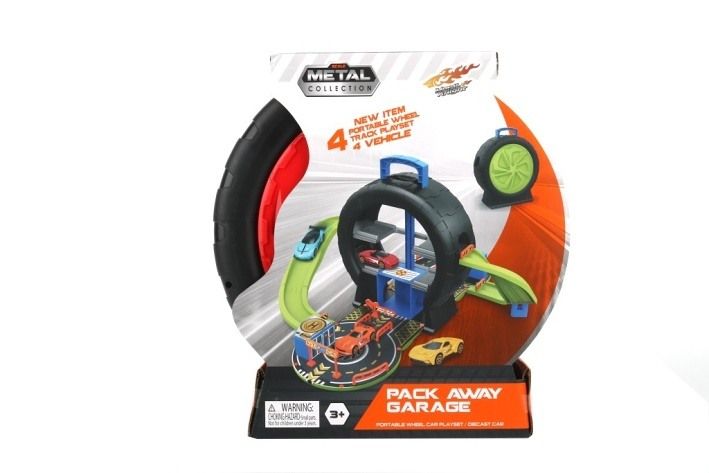Hrací set se 4 autíčky je v designovém kufru ve tvaru pneumatiky.