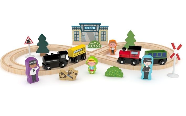J`adore je řada vzdělávacích hraček pro nejmenší, vyrobených z ekologicky udržitelného dřeva, bez chemikálií. Produkt stimuluje dětskou fantazii. Set je vhodný pro děti od 3 let. Set obsahuje celkem 34 kusů – koleje, vláček, figurky zvířáte, domeček a stromy.