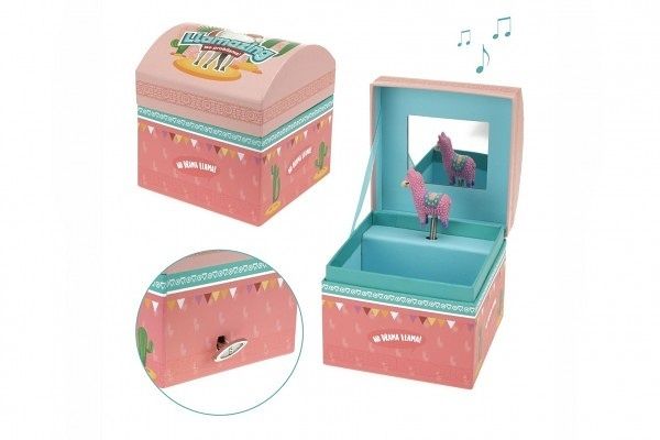 Šperkovnice pro malé dámy ve stylu cool lamy. Natáhněte klíček. Otevřete šperkovnici a ihned se rozezní líbezní melodie a bude se zde točit malá lama. Šperkovnice malým parádnicím uchová veškeré poklady, od náramkl přes náhrdelníky a další tajné věci! Nechybí ani zrcátko, které je připevněné na víku zevnitř.