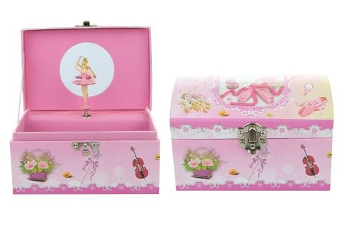 Hrací skříňka šperkovnice baletka. Uvnitř špekovnice je zrcátko a baletka, která po natažení klíčku tančí a hraje. Velikost cca 16 x 10,5 x 11 cm. Baleno v igelitovém sáčku. Věk 3+