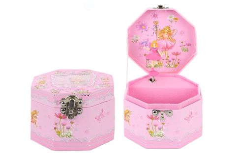 Hrací skříňka šperkovnice s baletkou. Uvnitř špekovnice je zrcátko a baletka, která po natažení klíčku tančí a hraje. Velikost cca 12 x 8 x 12 cm. Baleno v igelitovém sáčku. Věk 3+