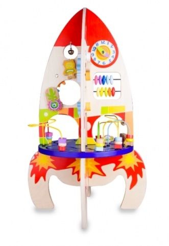 Hrací stůl dřevo edukační raketa 37x62x37cm pro nejmenší v krabici 32x45x20cm