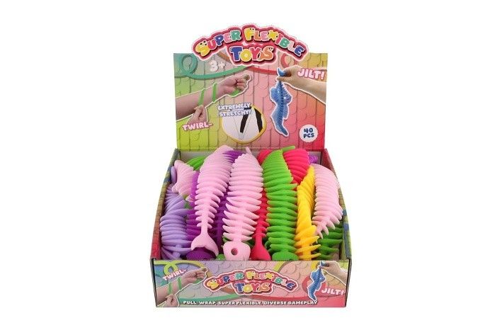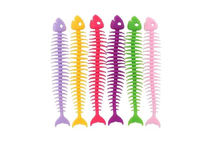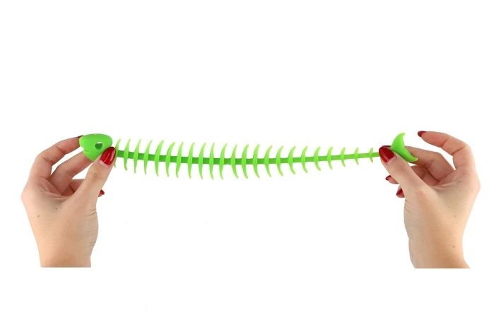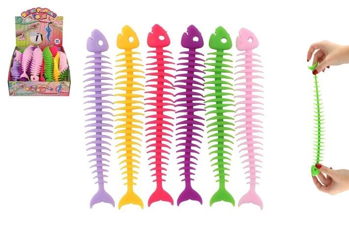 Zábavná natahovací hračka ve tvaru rybí kostry v pestrých barvách.