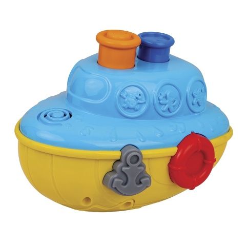 Barevný parník do vody zabaví každé dítě při koupání. Po zmáčknutí tlačítka nahoře parník stříká vodu, pro změnu směru otočte kormidlem, hračka se snadno čistí. Hračka vyžaduje baterie 2× AAA, nejsou součástí. Na baterie: 2x AAA (nejsou součástí balení)