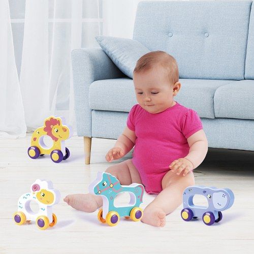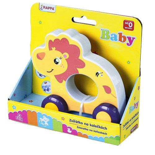 Senzační hračka zvířátko pro naše nejmenší děti. Hračka ve tvaru lva je opatřena kolečky, díky kterým s ní může děťátko snadno jezdit. Otvor uvnitř lvíčka usnadňuje dítěti jednoduchý úchop a manipulaci. Tato bezpečná plastová hračka je určena pro děti od 10 měsíců. Velikost zvířátka 15 x 12 cm.