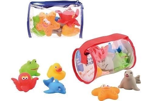 Hračky do vody Happy World v tašce – taška obsahuje 6 vodních zvířátek. Jsou určena speciálně do vody.