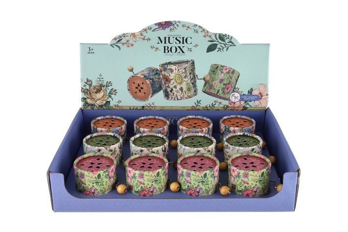 Hrající skříňka mlýnek kov/papír 9cm 3 barvy