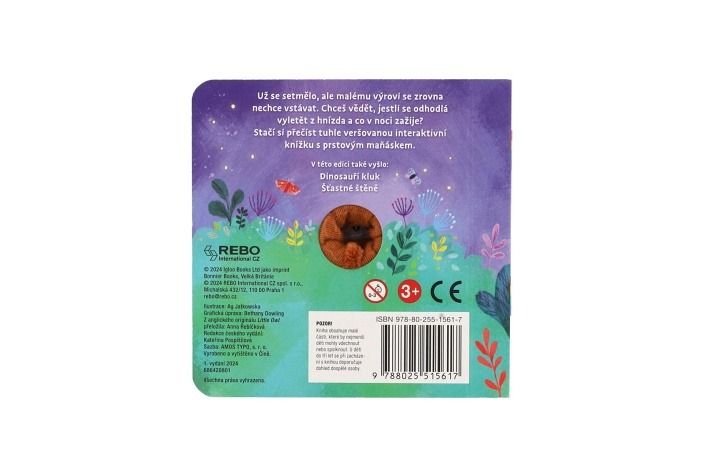 Už se setmělo, ale malému výrovi se zrovna nechce vstávat... jeho příběh malého posluchače zaujme díky hravým veršíkům i díky tomu, že hlavního hrdinu nepředstavuje pouhá ilustrace v knížce, ale prstový maňásek připevněný ke knize, kterého si může i pohladit nebo si s ním pohrát.