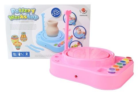 Hrnčířský kruh. Napájení pomocí adaptéru (je součástí balení), nebo pomocí baterií (3xAA-nejsou součástí balení). Balení obsahuje hrnčířský kruh, barvy, štětce a modelovací hmotu.Rozměr balení cca 36,5 x 24 x 8 cm. 2 barvy-dodáváme dle skaldové dostupnosti. Věk 8+