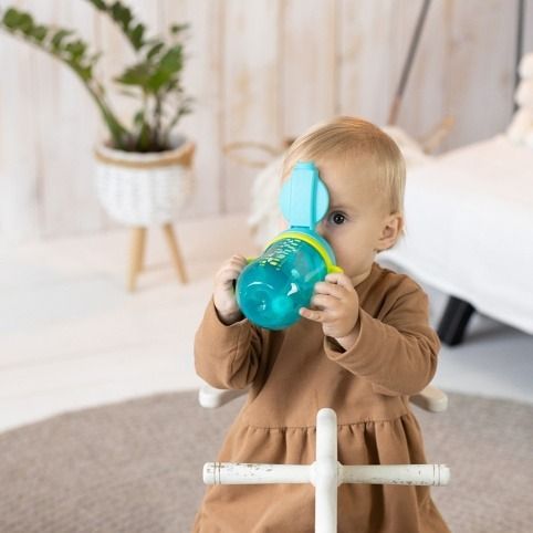 Hrneček se silikonovým brčkem 300 ml zelený marina 9m+ – velmi snadná údržba, odklopitelné horní víčko, gravitační kulička proti převržení, lze pít z jakéhokoli úhlu s jakýmkoliv množstvím tekutiny uvnitř. Neobsauje BPA.