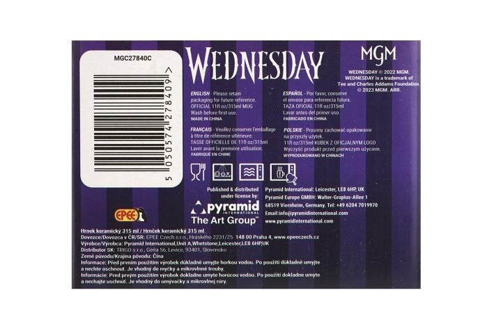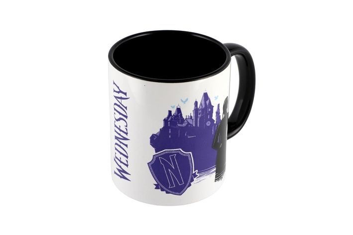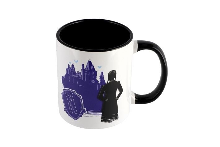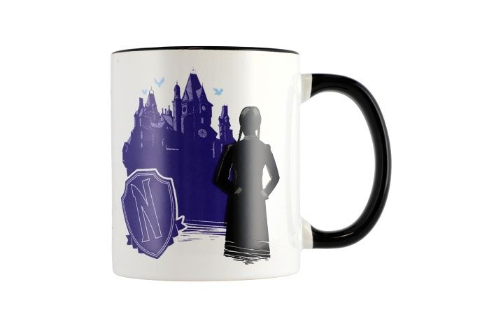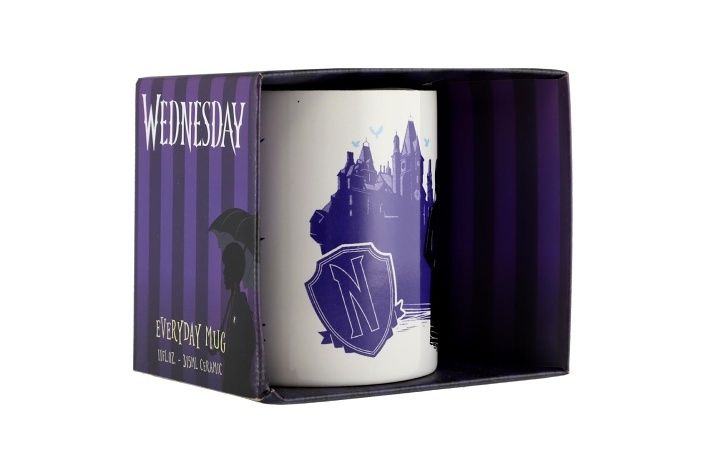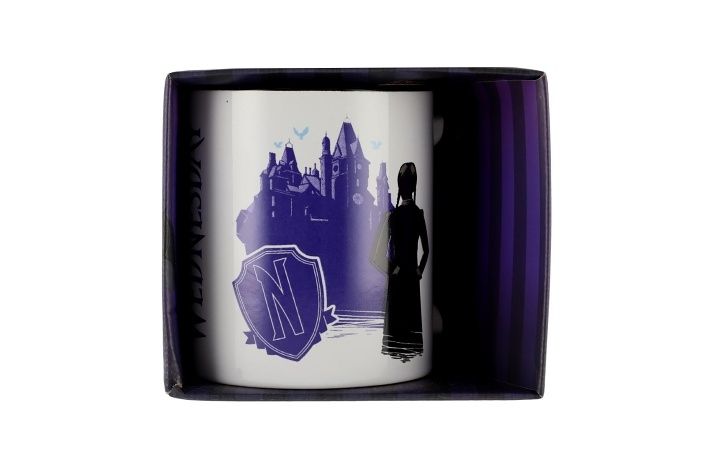 Keramický hrnek v objemu 315 ml, baleno v dárkovém boxu. Hrnek je možné použít do myčky nádobí a mikrovlnné trouby. Stylový design v bílo-černém provedení s fialovými prvky potěší každého fanouška temného humoru a atmosféry Nevermore Academy.
