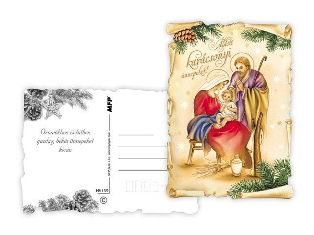 POHLEDNICE S MAĎARSKÝM TEXTEM. Pohlednice s vánoční tématikou. Text obsahuje 6 pohlednic z 6. Uvedená cena je za 1 ks Rozmery: 10,5 x 14,8 cm Papier: pohľadnicový kartón 240 g Povrchová úprava: bez laku s výsekem Text : 6/6