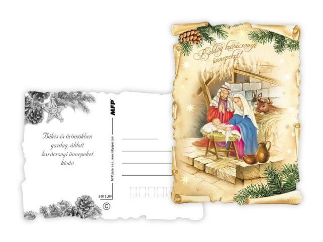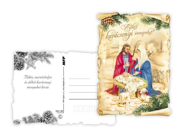 POHLEDNICE S MAĎARSKÝM TEXTEM. Pohlednice s vánoční tématikou. Text obsahuje 6 pohlednic z 6. Uvedená cena je za 1 ks Rozmery: 10,5 x 14,8 cm Papier: pohľadnicový kartón 240 g Povrchová úprava: bez laku s výsekem Text : 6/6