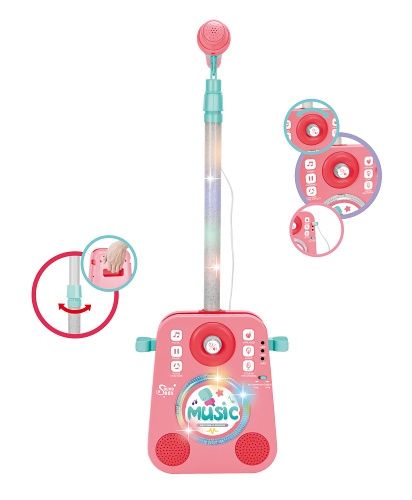 Hudební box s mikrofonem v růžové barvě je skvělým dárkem pro každého hudebníka.