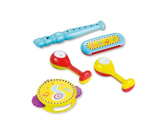 Hudební nástoje. 5ks. Obsah balení - rumba koule (2ks), foukací harmonika, flétna, tamburína.