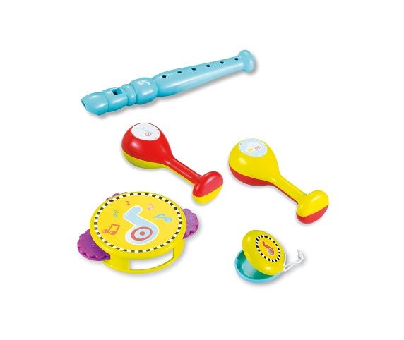 Hudební nástoje. 5ks. Obsah balení - rumba koule (2ks), foukací harmonika, flétna, tamburína.