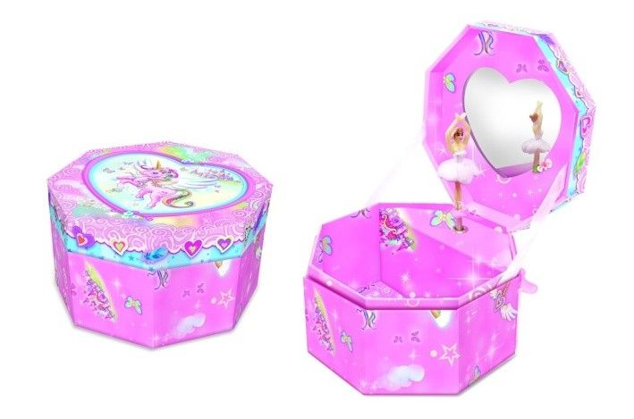 Uložte si své poklady do šperkovnice s krásným designem. Po natažení a otevření hraje šperkovnice hudbu. Skvělý doplněk pro malé princezny a parádnice. Výrobek je z pevného, odolného papíru s hladkou povrchovou úpravou. Vhodné pro děti od 6ti let.