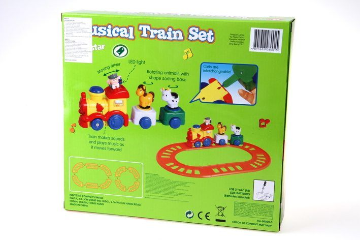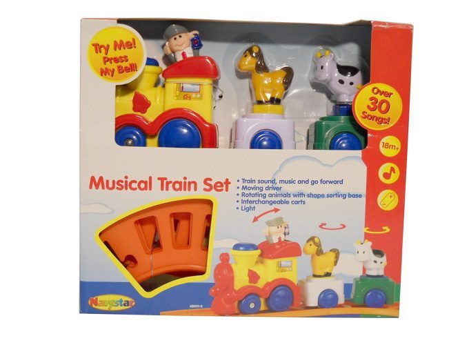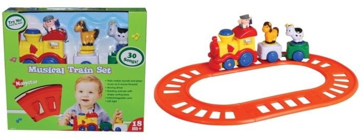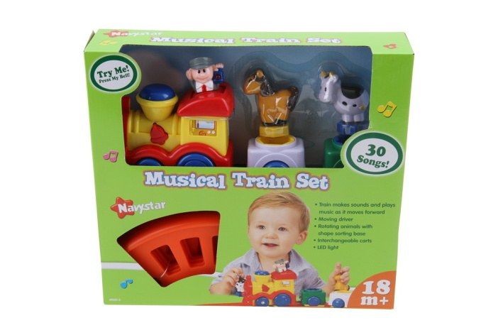 Hračka vydává zvuky opravdového vlaku! Hraje 30 melodií. Jede dopředu,