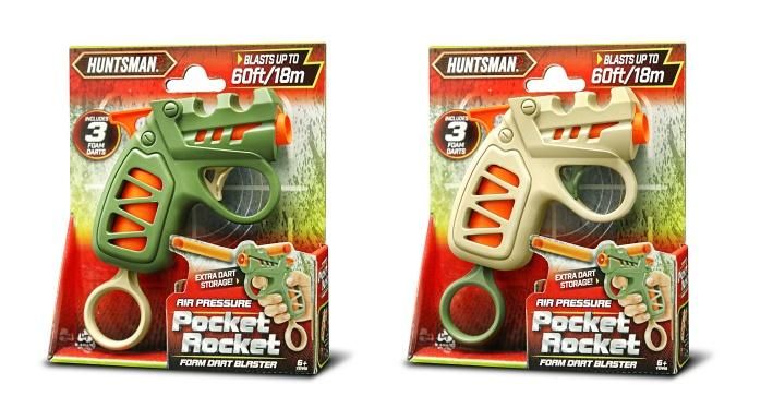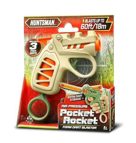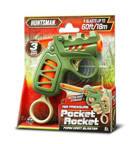 Huntsman Pistole kapesní natahovací. Velikost 13 cm. Dostřel až 18m. Střela se vkládá do hlavně zbraně, nabití pistole se provádí natažením prstýnku ve spodní části, spouští se vystřelí. Obsah balení - pistole, 3 pěnové střely. 2 varianty - zelená, hnědá.