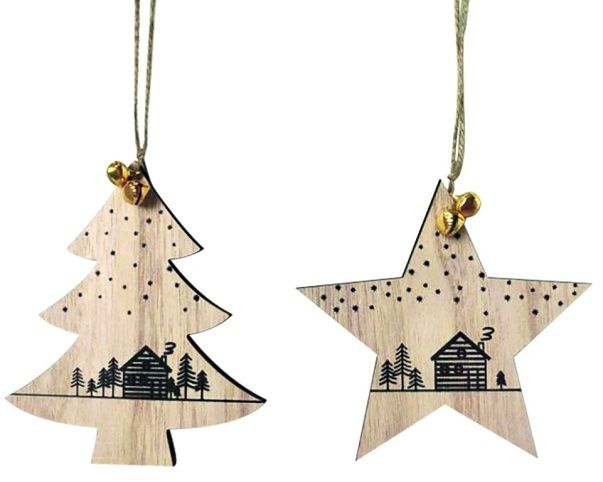 Hvězda dřevěná a stromeček na zavěšení Scandi 11 x 13 cm /23003