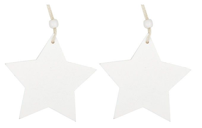 Hvězda dřevěná bílá, 9 cm 2 ks, na zavěšení
