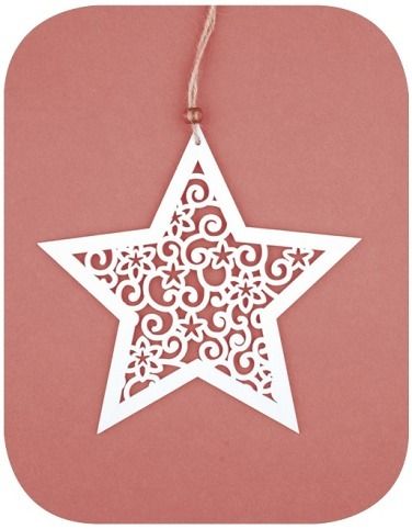 Hvězda dřevěná s dekorem na zavěšení 18 cm, bílá