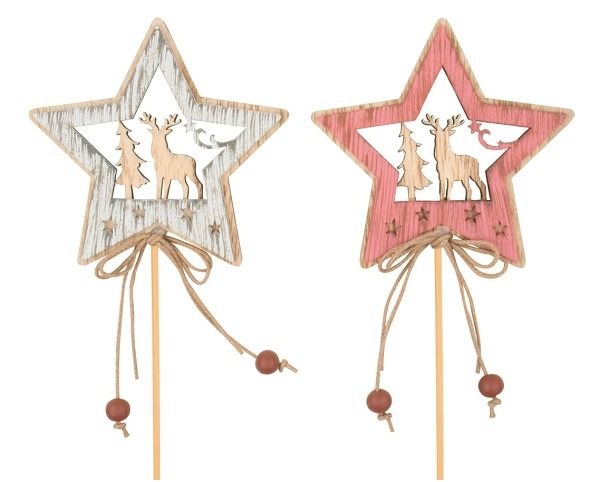 Hvězda dřevěná s jelenem 7 cm + špejle