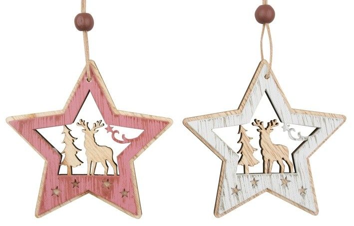 Hvězda dřevěná s jelenem na zavěšení 7 cm