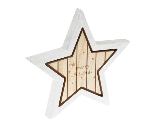 Vánoční dekorace - dřevěná hvězda - uprostřed hvězdy je nápis merry christmas Můžete použít k ozdobení prázdného prostoru, do okna, na polici a zkrášlit tak Vaše bydlení. Uvedená cena je za 1 ks.