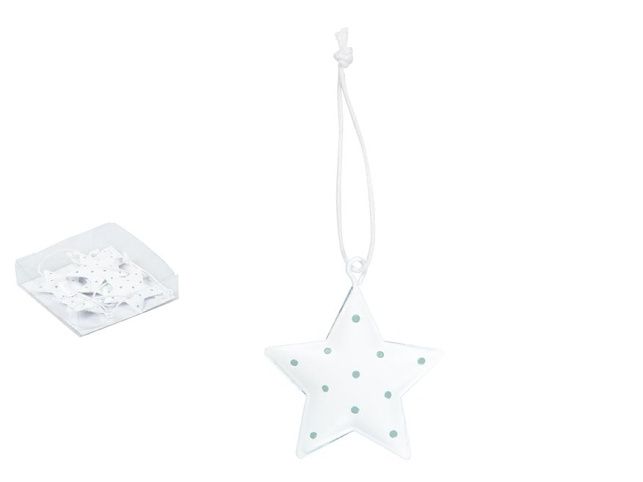 Vánoční dekorace z kovu ve tvaru hvězdy. V balení je 6 ks a každá hvězda je opatřena závěsem.