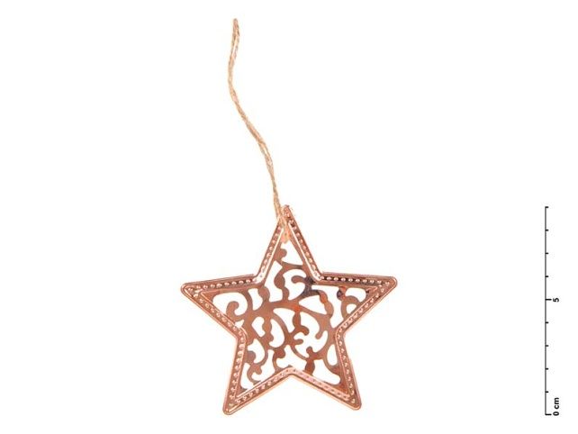 Vánoční kovová hvězda, měděné barvy - Vánoce jsou svátky pohody a klidu, a proto je potřeba se na ně pořádně připravit. Vyzdobte si domov touto krásnou kovovou dekorací, která Vám navodí pocit přicházejících Vánoc. Tato vánoční ozdoba je opatřena očkem a provázkem na zavěšení. Můžete použít na ozdobení vánočního stromečku, zavěsit na dveře, okno a zkrášlit tak Vaše bydlení. Uvedená cena je za 1 ks.