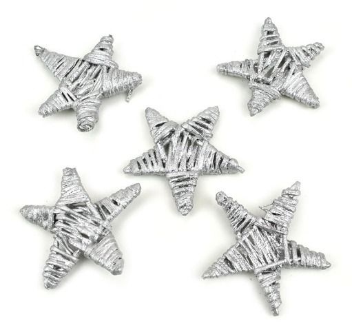 Hvězda proutěná, stříbrná, 5 cm, 5 ks