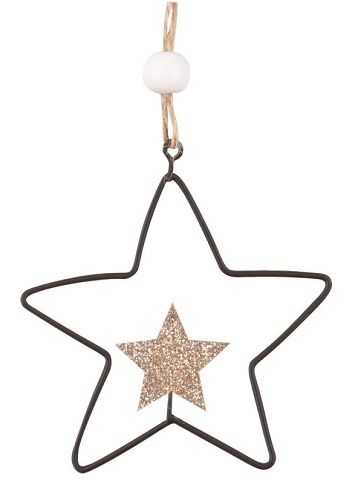 Hvězda s glitrem kovová na zavěšení 8,5 x 5,5 x 1 cm