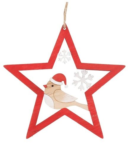 Hvězda s ptáčkem na zavěšení 14 cm, červená