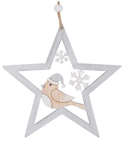 Hvězda s ptáčkem na zavěšení 14 cm, stříbrná
