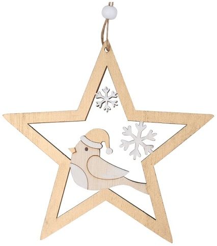 Hvězda s ptáčkem na zavěšení 14 cm, zlatá