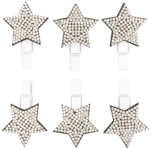 Hvězda se stříbrnými kamínky na kolíčku 3 cm 6 ks