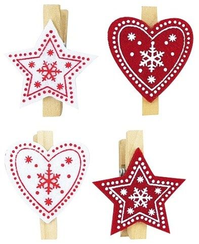 Hvězda, srdce z filcu na kolíčku 3,5 cm, 12 ks