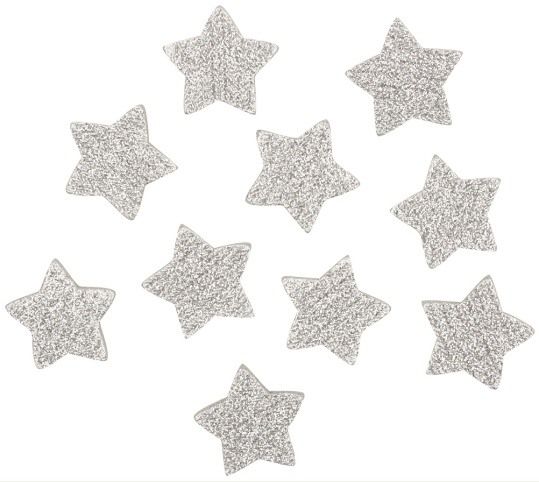 Hvězda stříbrná s lepíkem 5 cm,akryl s glitry, 10 ks