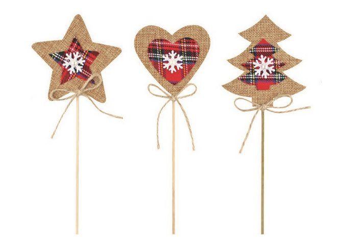 Hvězda,strom,srdce jutové 9cm+špejle